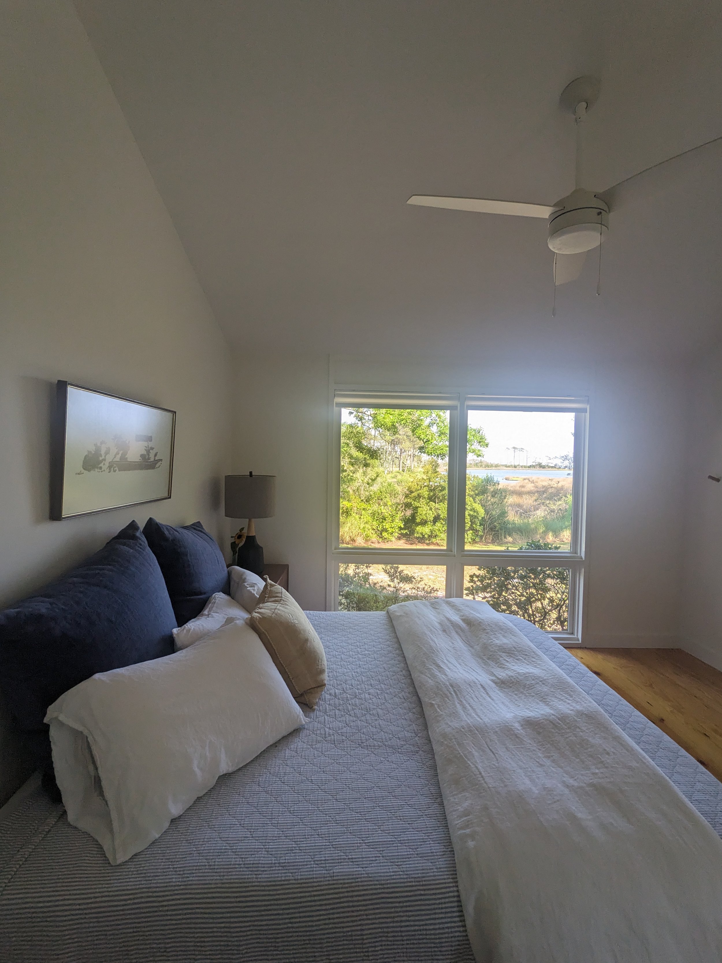 All rooms are super dreamy and have an unobstructed view of the cove. All three rooms are about the same size and they share the two full baths. There is one queen room, one king room, and two twins room (or one king).